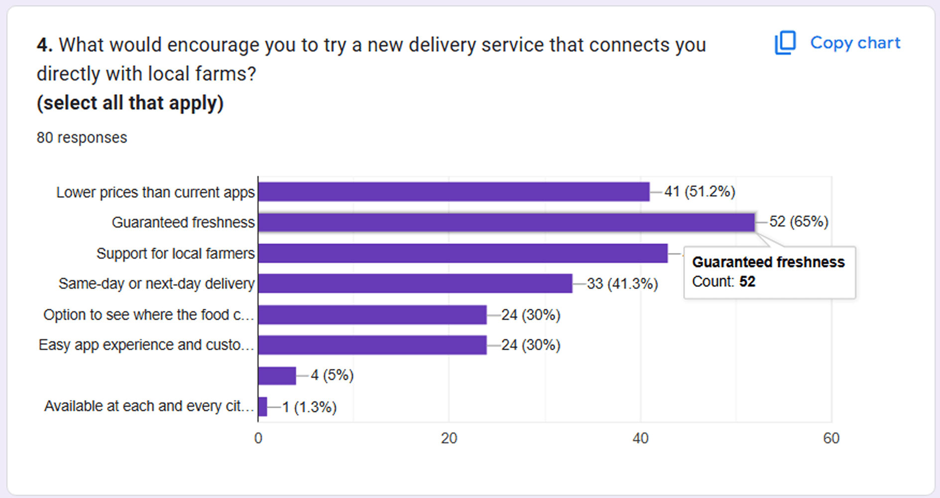 • Consumers wanted freshness, trust in source, fast delivery, and support for local farms.