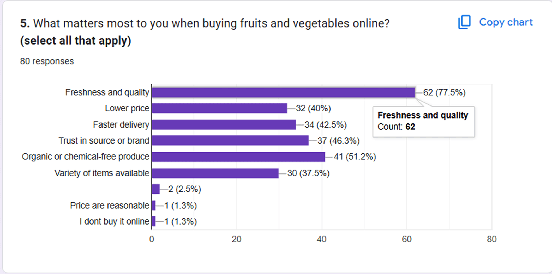 More than 70% consumers cared more about quality and freshness than pricing.