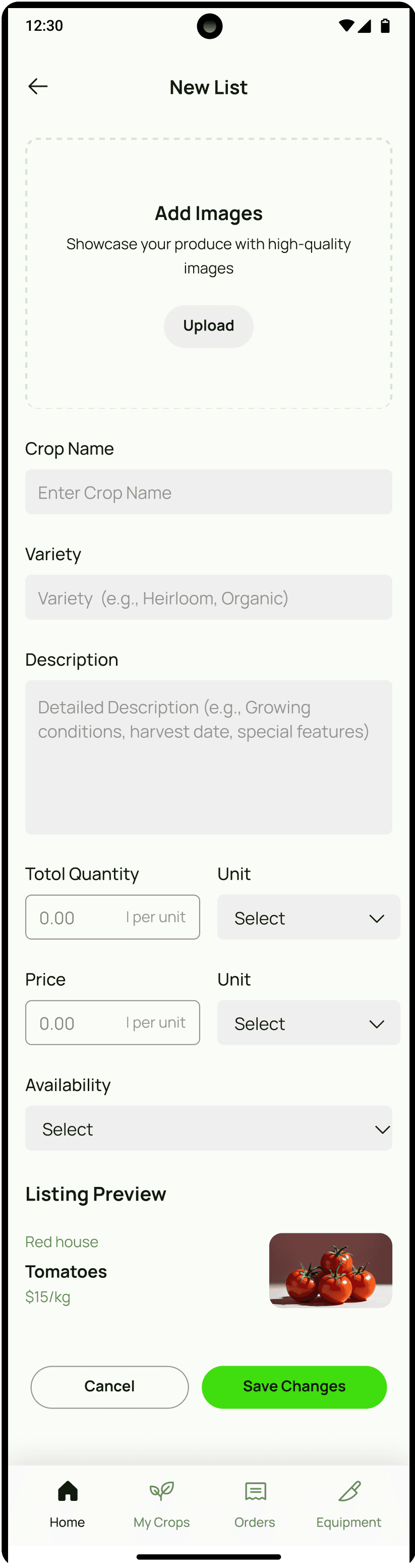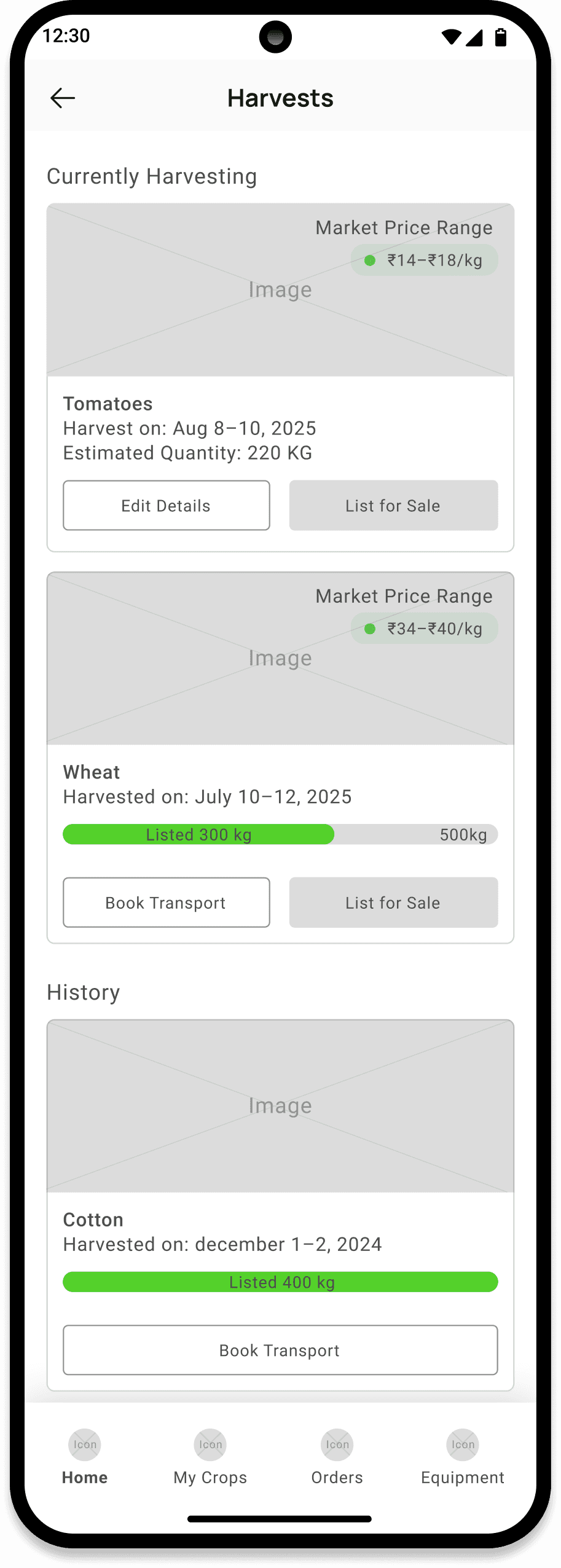 Unified card layout across screens (e.g., Equipment screen now matches My Crops).