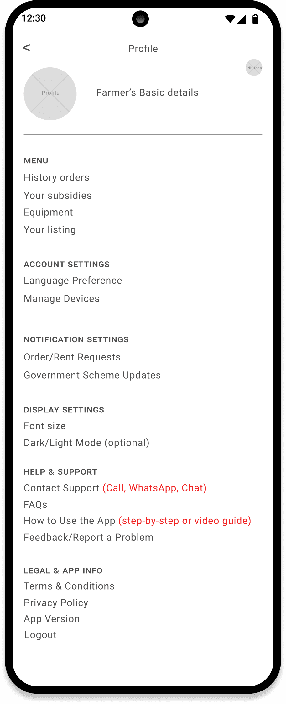 • We as designers: While building this application mainly for farmers it is important to keep in mind that language can be a hindrance.