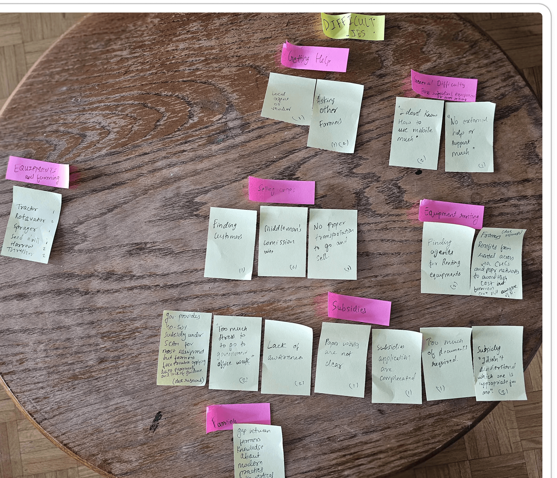 We conducted surveys and affinity mapping and performed desk research for both farmers and consumers: