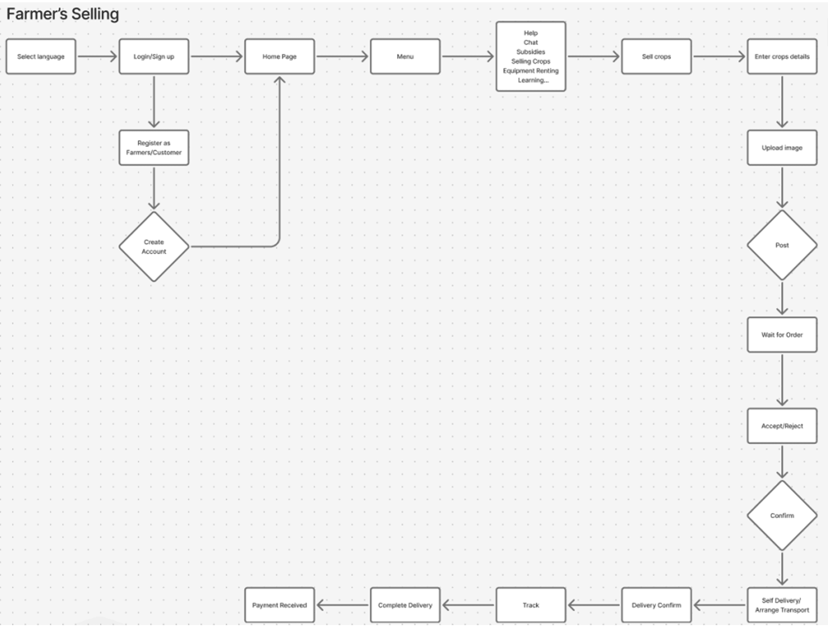 Farmer's Scenario: User Flow for renting equipments from other farmers.